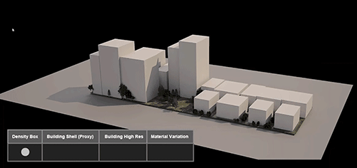 可以通过简单的CGA语法来改变模型的LOD(Level of Details)。这在制作大场景时非常有用,可以很快速地制作出一版简模用于制作Layout和Previz.