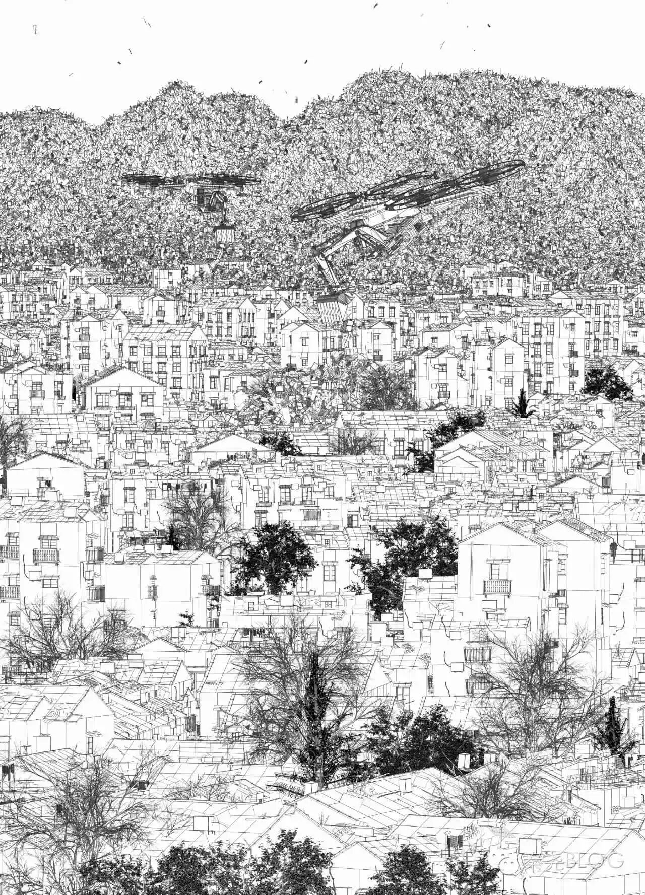 作品「拆」里的建筑物都是在City Engine里生成的: